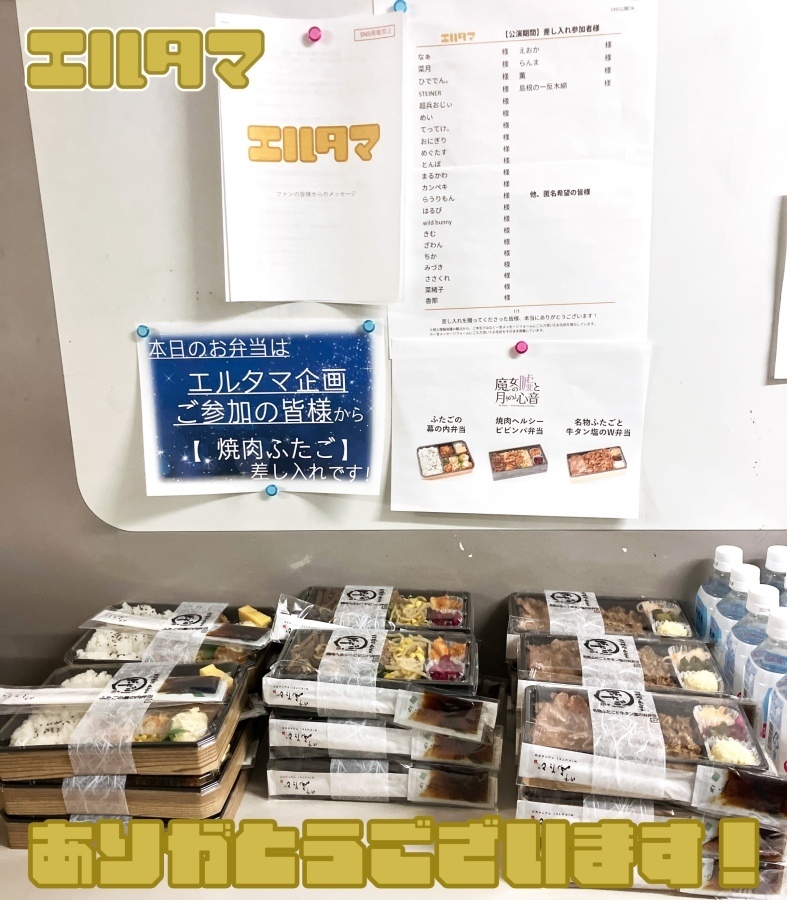 先日実施された舞台『魔女の嘘と月の心音』エルタマ企画にて、ファンの方々の応援の気持ちがこめられた差し入れが贈られました。また、ご登録いただいた全てのメッセージも届けられました。