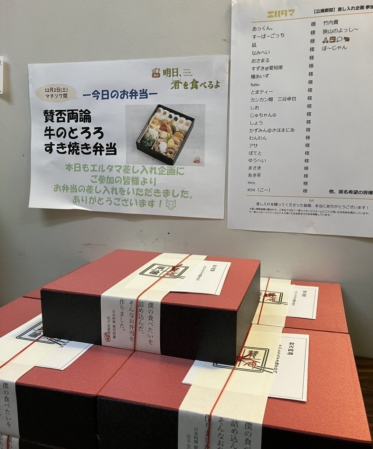 舞台『明日、君を食べるよ』応援差し入れ企画の報告とお礼(企画:エルタマ)