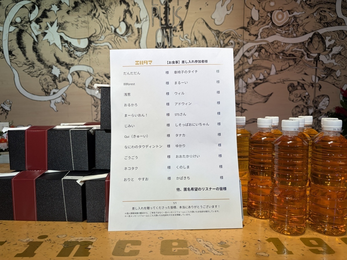 先日実施されたあすみさんのラジオ大好きっ子☆さん 番組イベント2025 エルタマ企画にて、ファンの方々の応援の気持ちがこめられた差し入れが贈られました。また、ご登録いただいた全てのメッセージも届けられました。